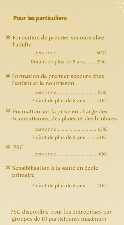 Que vous soyez particuliers, professionnel ou soignant, nous vous apprenons à réagir aux situations d’urgences dans une ambiance conviviale et bienveillante.
